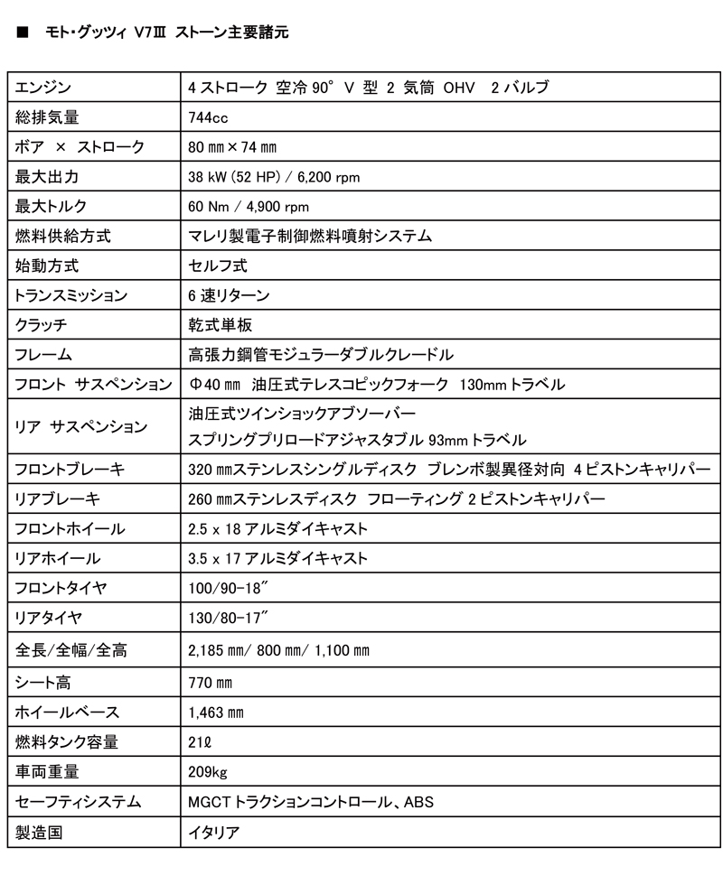 2019年2月8日(金) 発売 モト・グッツィ V7ⅢSTONE MY19モデル