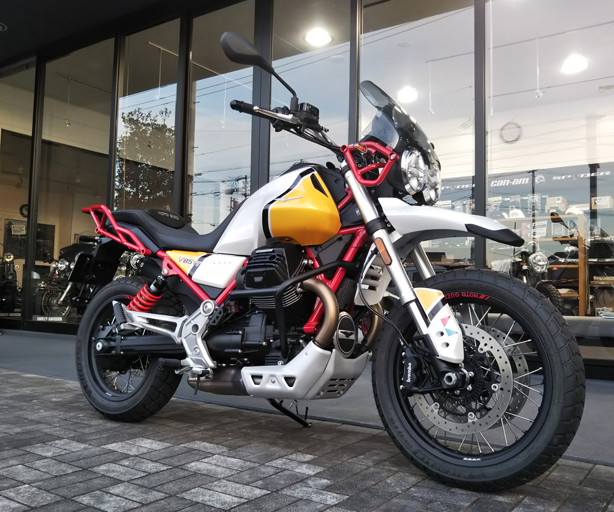 当店の試乗車「モト・グッツィ V85TT」に早速装着です![]()